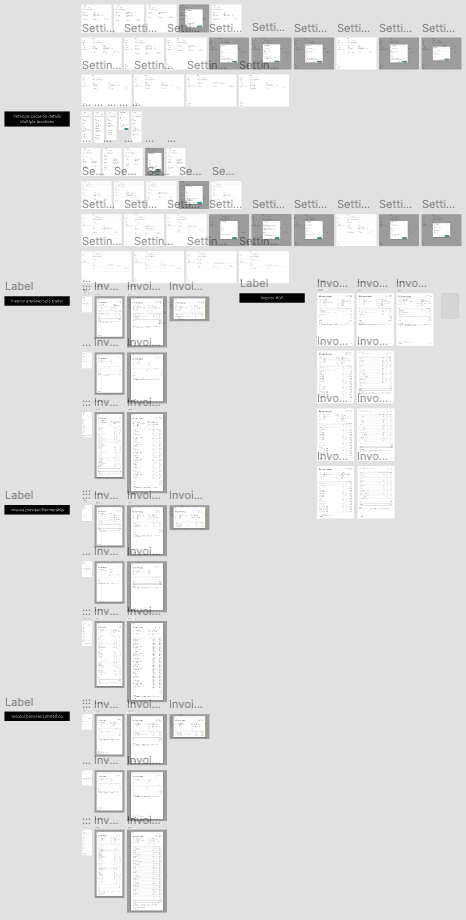 For Preview It was decided to display the invoice in the format that the user sees it in a PDF or printed form. Therefore, for mobile devices, it isn’t adapted but proportionally resized. To design this screen, it was first necessary to create a template for the invoice, but I will tell you a bit more about that below.